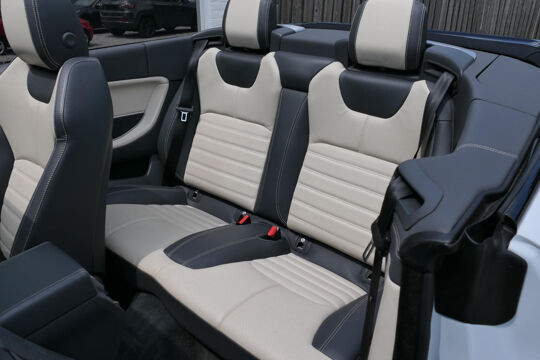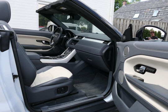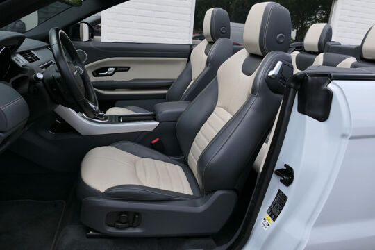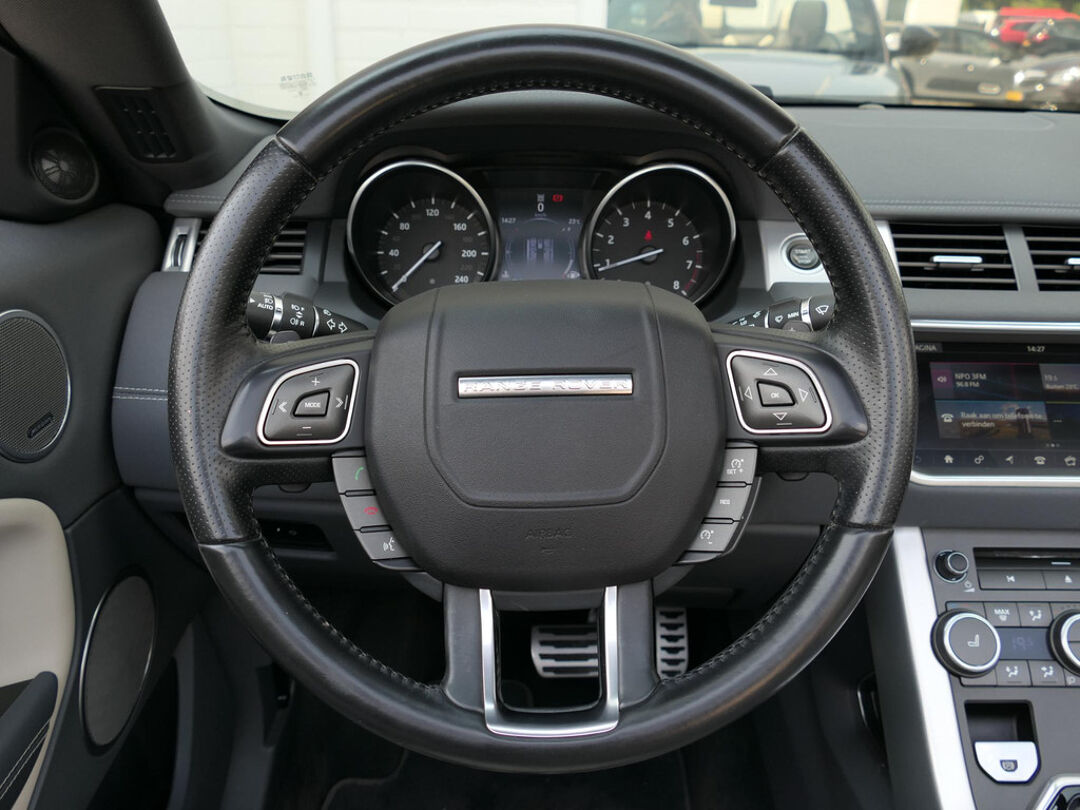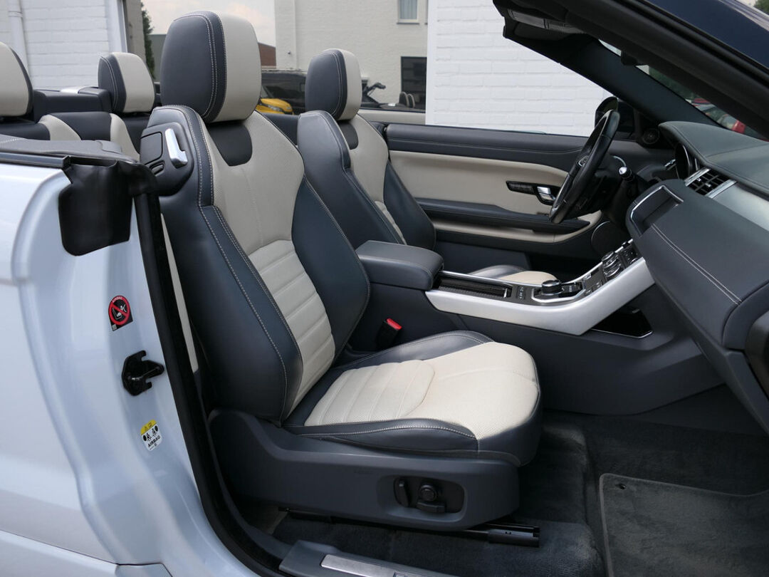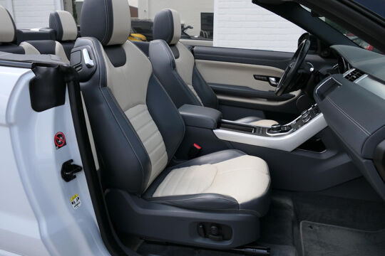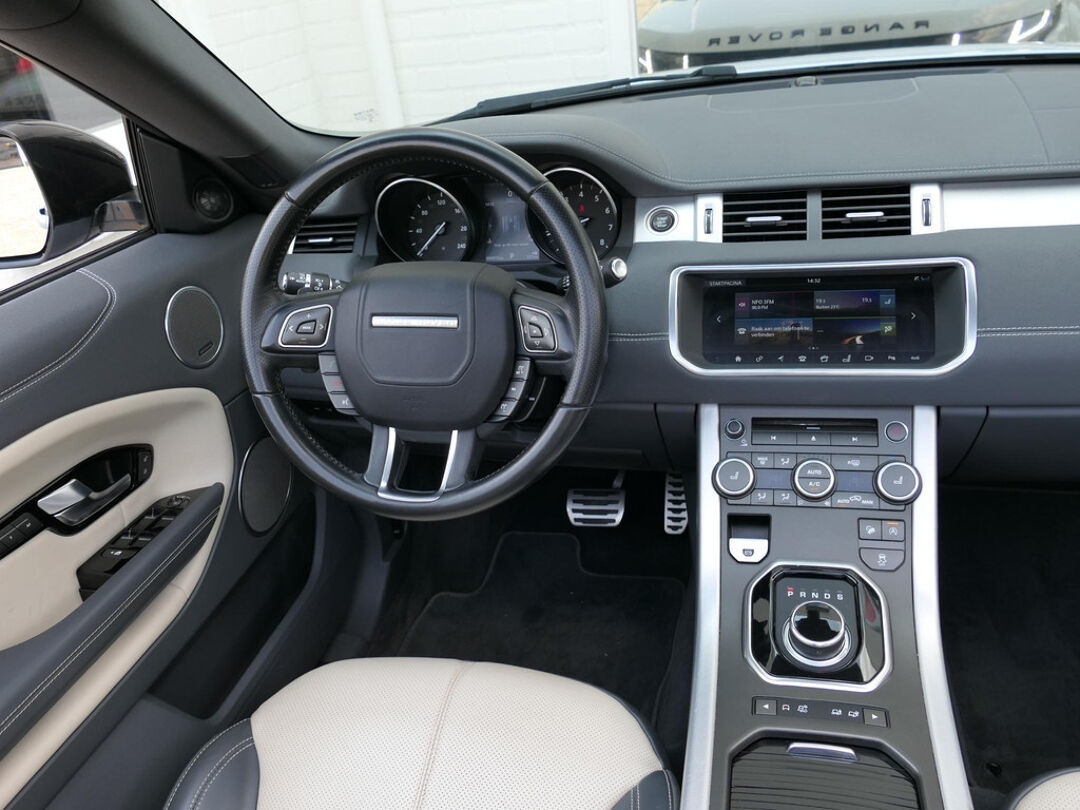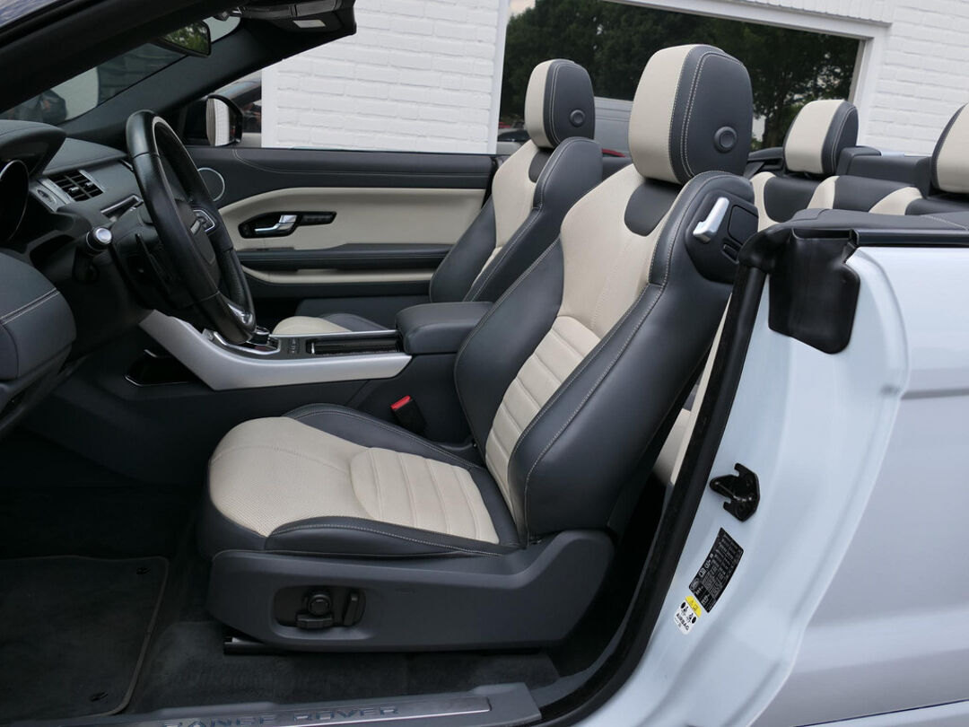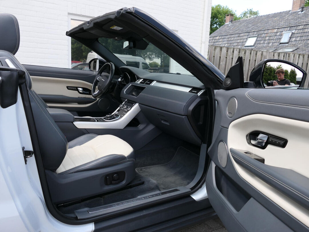 Deze prachtige Land Rover Range Rover Evoque cabrio is mega smaakvol samengesteld en in zeer nette staat. De Evoque is parelmoer wit met zwarte accenten en heeft een unieke zwart/beige leder combinatie voor het interieur. Klaar voor de zomer met deze super gave Evoque? Neem dan telefonisch contact met ons op!